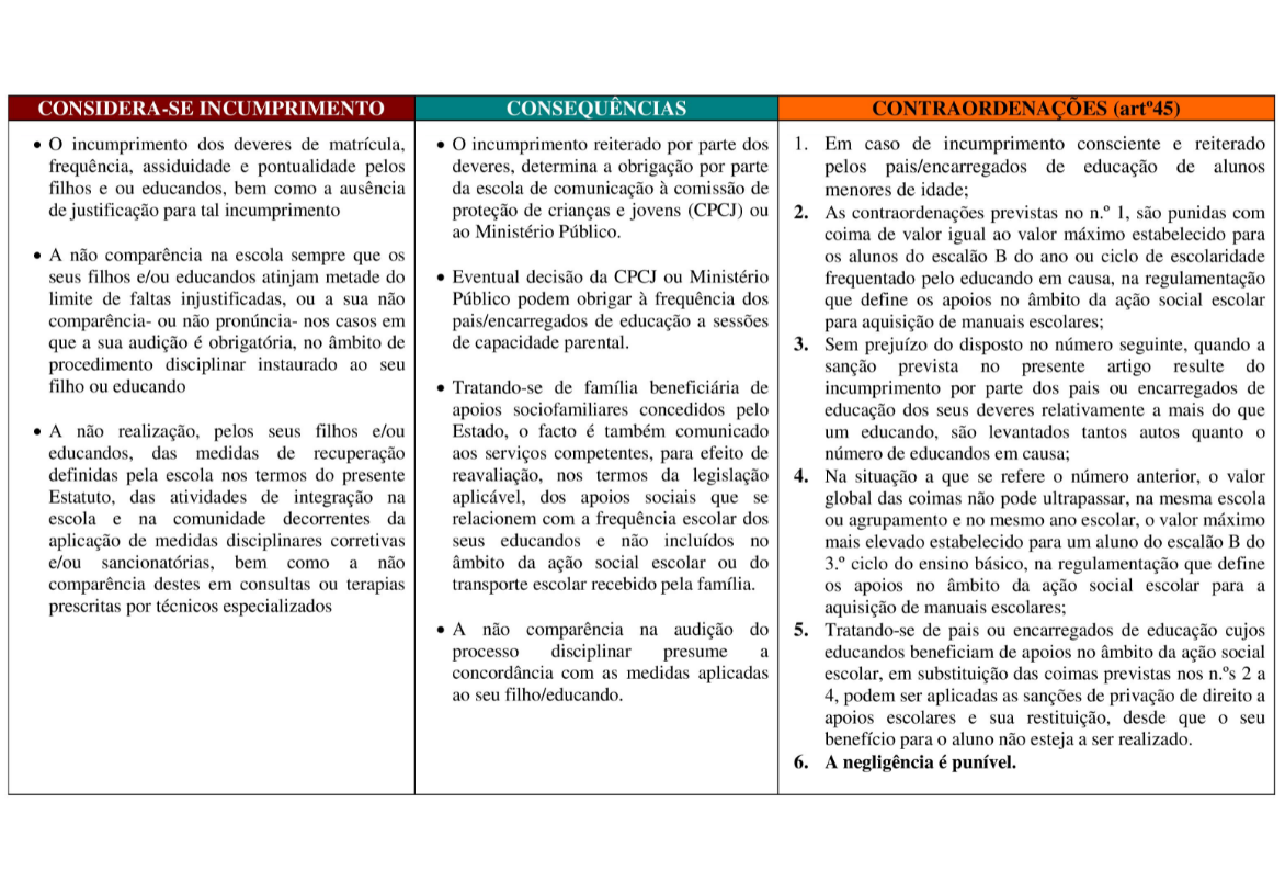 Incumprimento dos Deveres por parte dos Pais/Encarregados de Educação